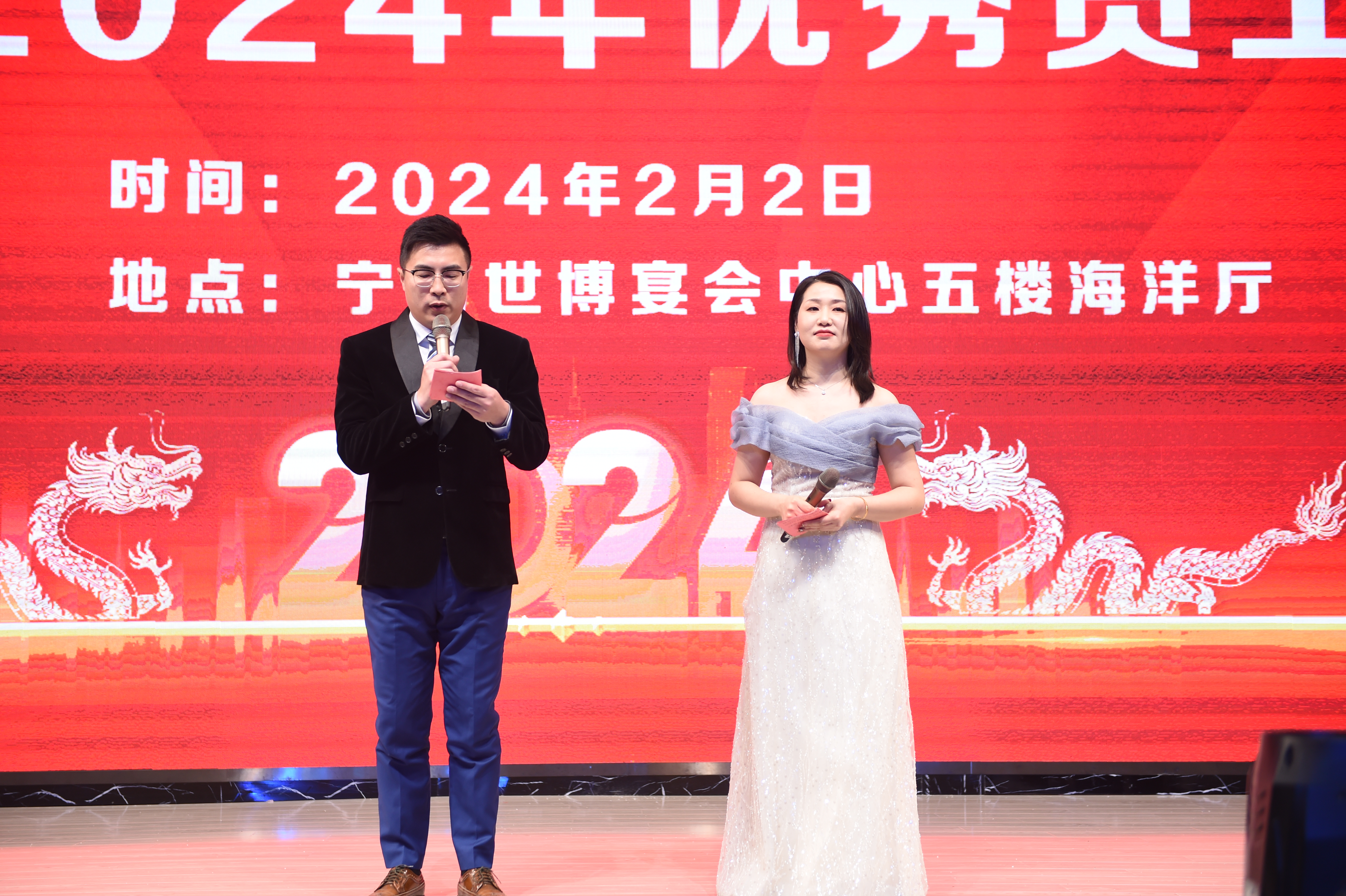 龍騰虎躍慶盛事,馬到功成事業興,安徽瑞普橡塑有限公司年會由國際貿易部經理和人力資源部經理擔任主持人,瑞普2024年會在倆位主持人簡單而又大氣的開場白下正式拉開序幕。